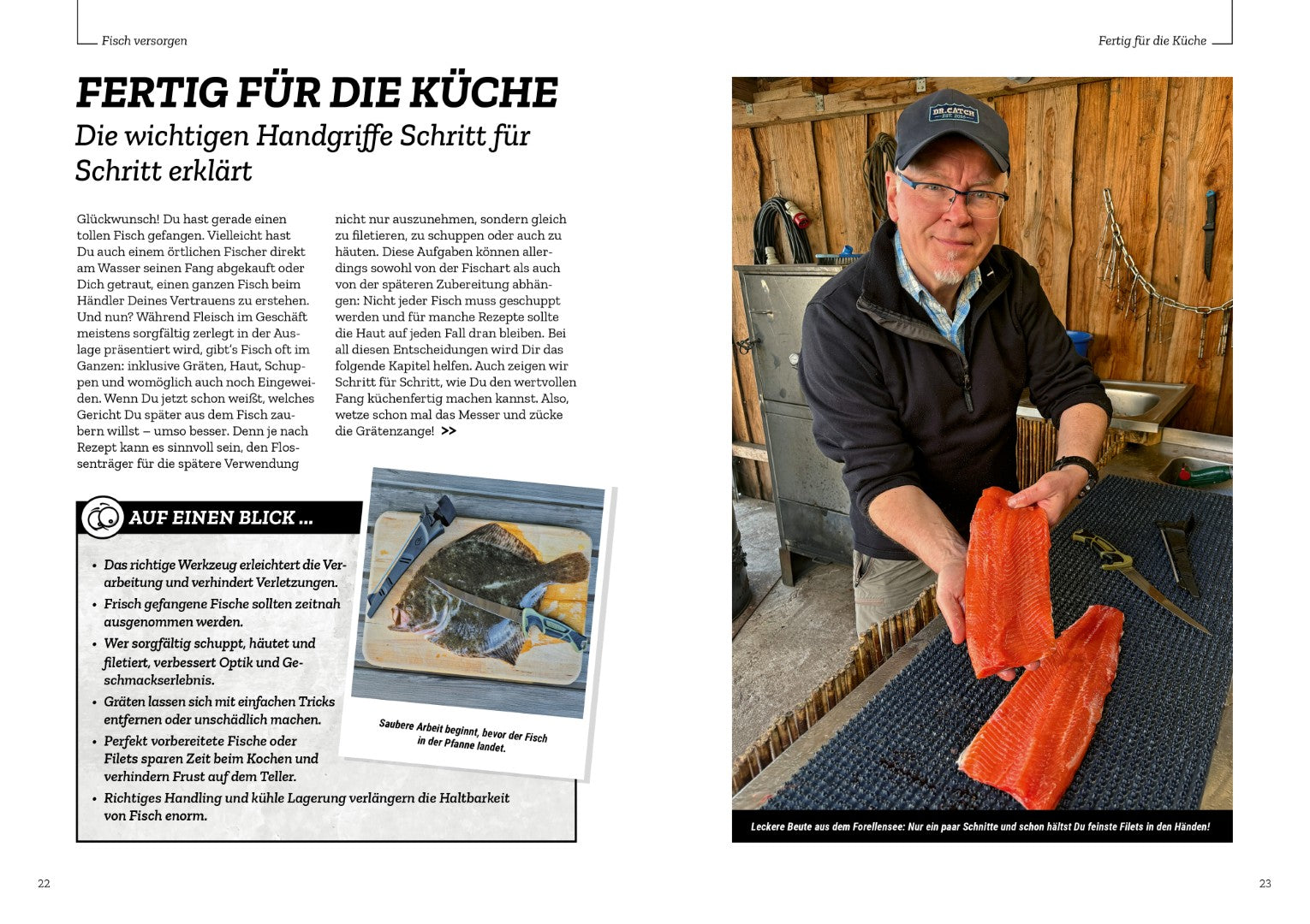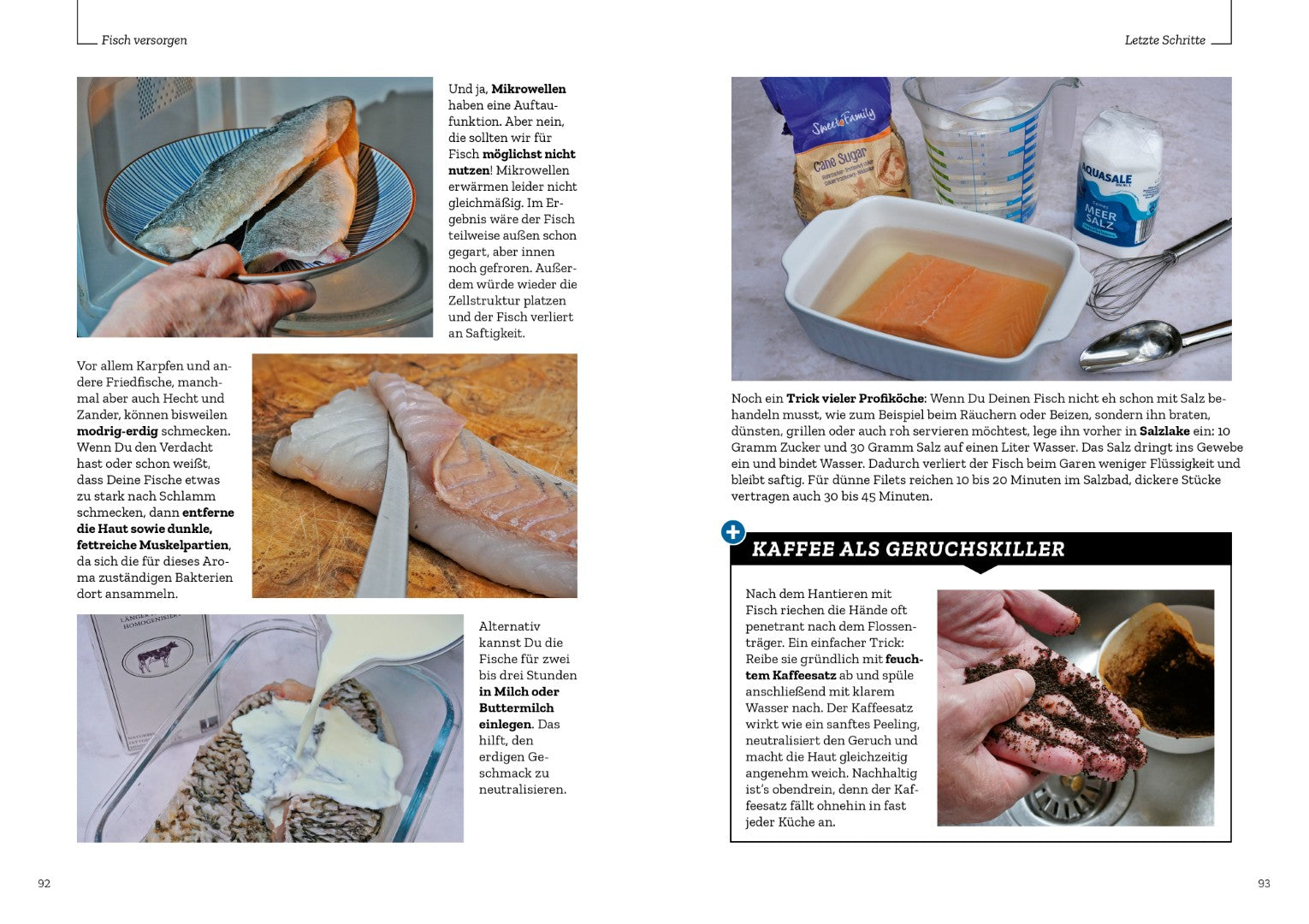 Für das kulinarische Finale nach dem Fang: Dieses Buch nimmt Dich an die Hand, von der ersten Schuppe bis zum letzten Bissen. Erfahre, wie Du heimische Süß- und Salzwasserfische richtig versorgst und lästige Gräten in den Griff bekommst. Finde heraus, wann Haut und Schuppen dranbleiben dürfen – und wann besser nicht. Wir verraten Dir, welche Arten sogar roh ein echter Kracher in der Küche sind und wie Du Deinen Fang so haltbar machst, dass er noch Wochen später wie fangfrisch auf den Teller kommt. Dann geht’s ans Eingemachte: Wir gehen mit Dir allen wichtigen Garmethoden auf den Grund, damit Du genau weißt, worauf es an Herd, Grill oder Ofen ankommt. Vom Backen, Braten und Beizen übers Grillen, Frittieren, Dünsten und Dämpfen bis zum Heiß- und Kalträuchern lässt dieses 256 Seiten starke Werk nichts aus. Bildlastig, klar strukturiert, versehen mit vielen hilfreichen Tabellen und detaillierten Schritt-für-Schritt-Anleitungen wird FISCH – VOM FANG BIS ZUR PFANNE zu Deinem besten Küchenhelfer, wenn’s um Fisch geht – versprochen!